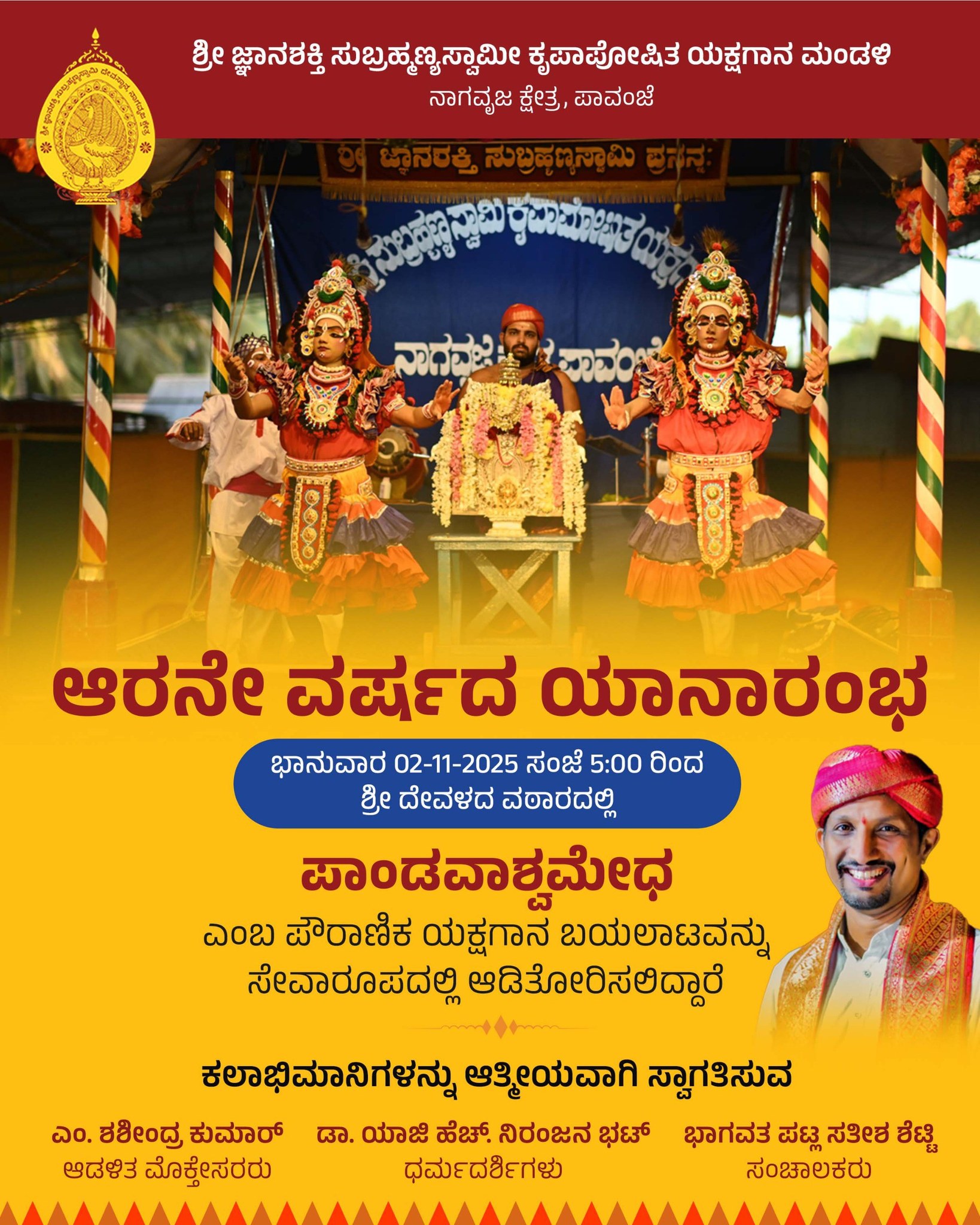 ಶ್ರೀ ಜ್ಞಾನಶಕ್ತಿ ಸುಬ್ರಹ್ಮಣ್ಯಸ್ವಾಮಿ ಕೃಪಾಪೋಷಿತ ಯಕ್ಷಗಾನ ಮಂಡಳಿ, ನಾಗವೃಜ ಕ್ಷೇತ್ರ ಪಾವಂಜೆ 02.11.2025 ಮೇಳದ ಆರನೇ ವರುಷದ ಯಕ್ಷಗಾನ ಯಾನಾರಂಭ #pavanjemela#sangeeta#mantra#veda#jagadguru#patla#patlasathishshetty#praphullachandra#ಪಟ್ಲ#jnanashakthi#yakshagana#devimahatme#sathishshetty#ganavaibhava#ಯಕ್ಷಗಾನ#ಪಾವಂಜೆ#ಮೇಳ#ಸುಬ್ರಹ್ಮಣ್ಯ#ನಾಗವೃಜ#ಕರಾವಳಿ#ಜ್ಞಾನಶಕ್ತಿ#ಯಾನಾರಂಭ